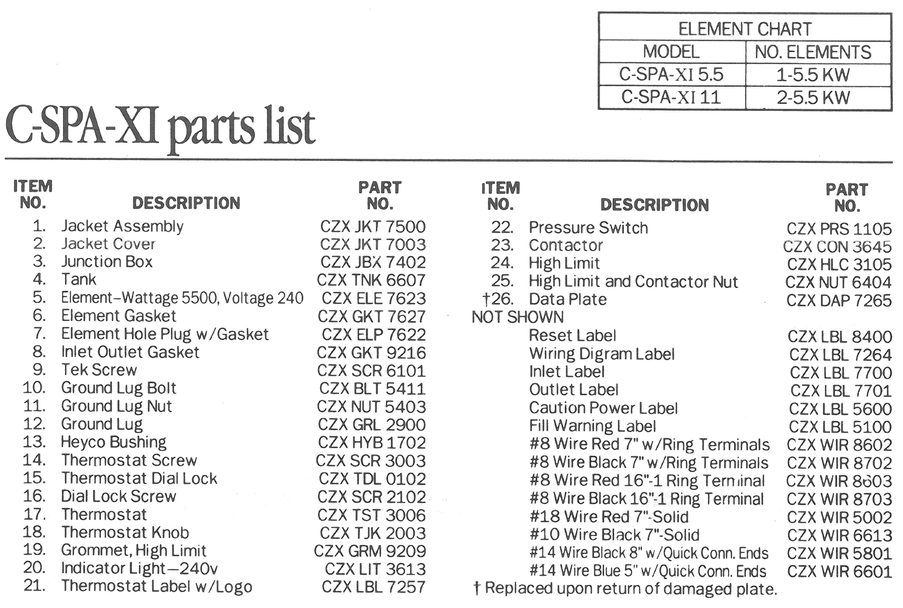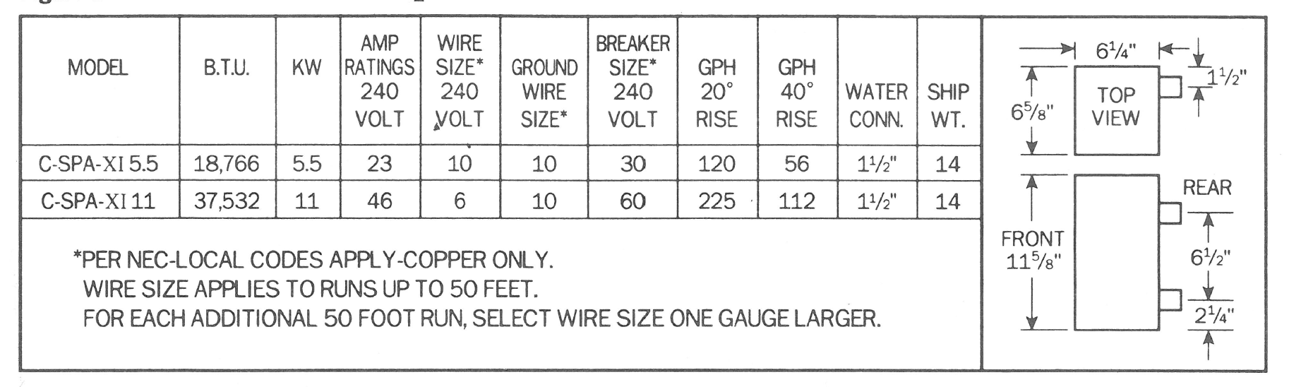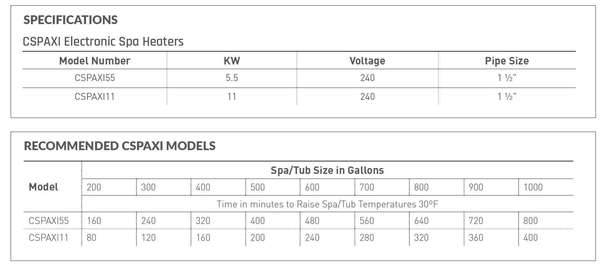CSPAXI11: Hayward CSPAXI11 Electric Spa Heater 11.0 KW ; 240v 60hz; 1000 gallons = 6 hours to raise to 30 degree F (18 deg Celcius to 36 deg Cel.)